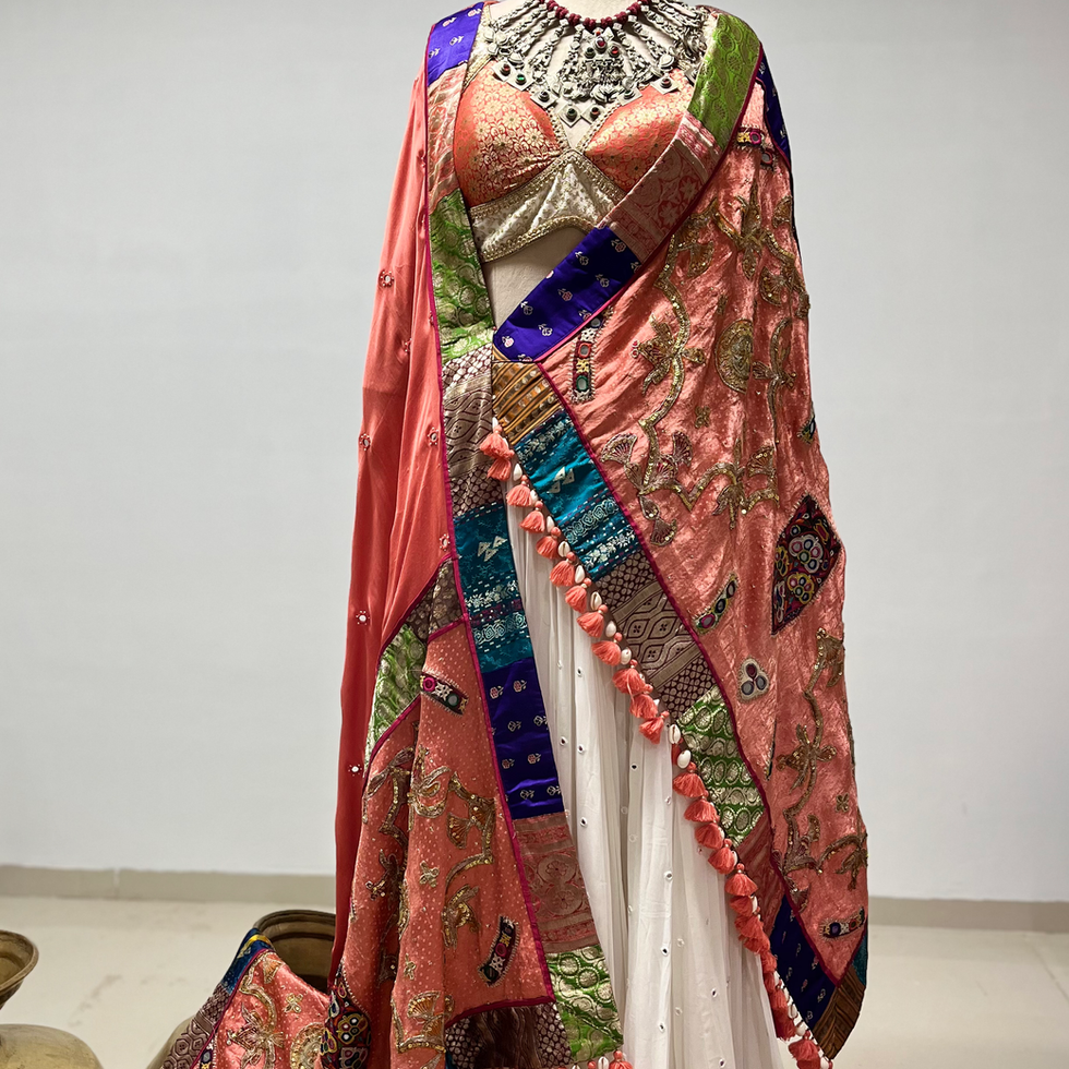 gajji silk dupatta with kutchi work and vintage work on it